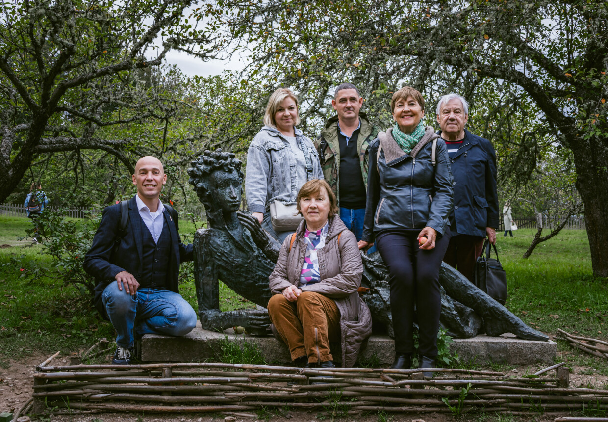 Следующий пункт программы – усадьба «Михайловское» – место, где поэт провел годы ссылки и создал более 100 произведений. Барский дом, банька с комнатой Арины Родионовны и кухня дадут представление о быте Александра Сергеевича в изгнании. Парк создан трудами деда и сына Пушкина и до наших дней сохранились мемориальные деревья.