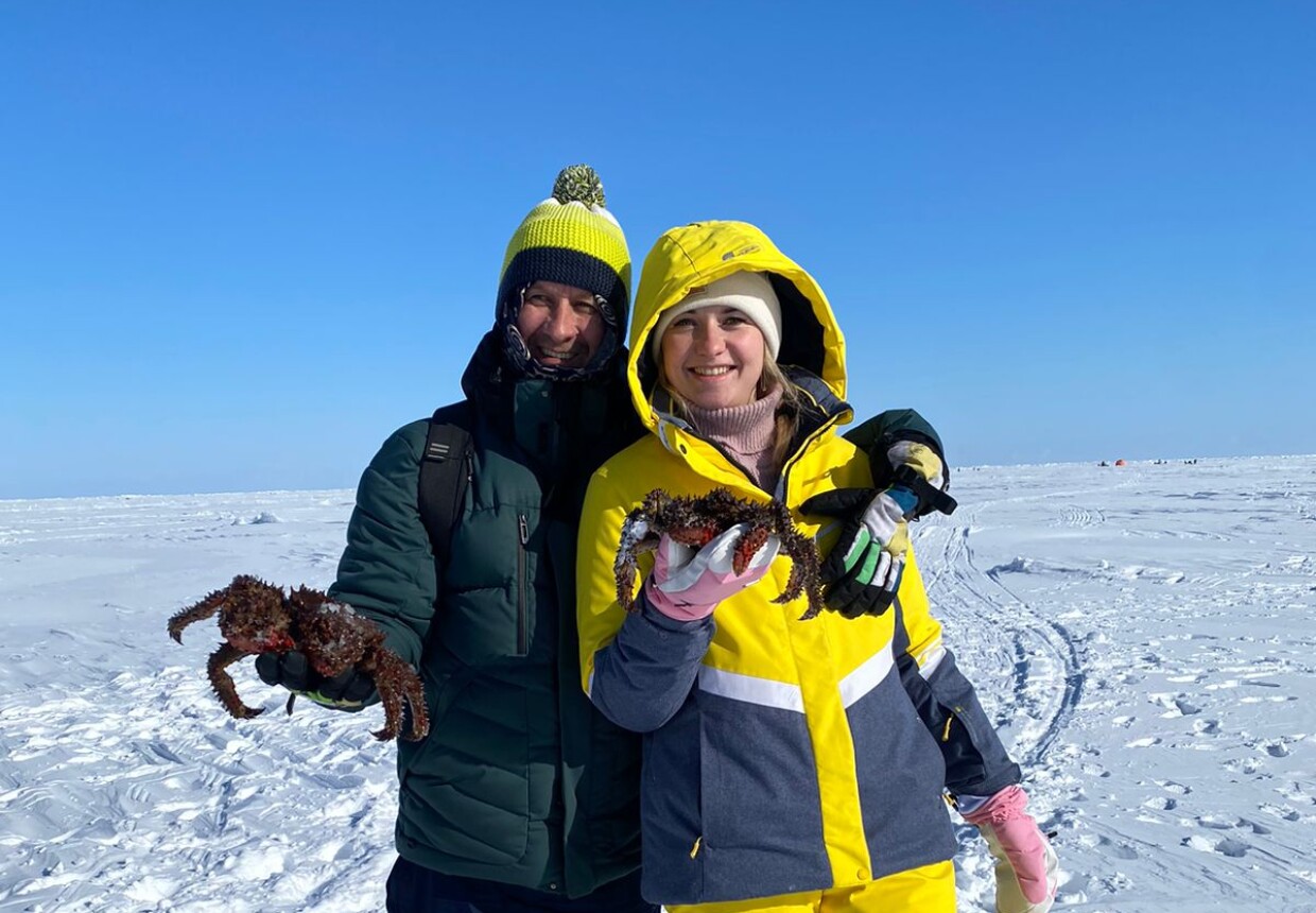 Предлагаем самую вкусную зимнюю гастро экскурсию, которая подарит несравненные эмоции. Отправляемся на замёрзший берег Охотского моря. Здесь, под толщей прозрачного льда, обитает колючий краб.